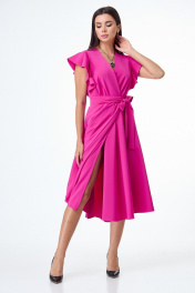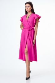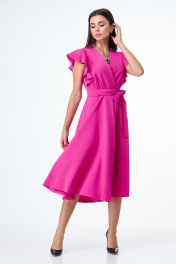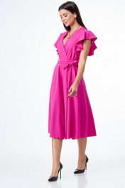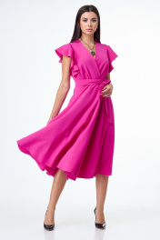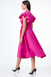 Розовое платье с воланами и крыльями юбки из плотной ткани T&N 7506 фуксия