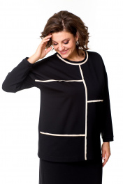 Демисезонный костюм юбка и джемпер с кожаной отделкой T&N 7570 черный