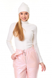 Теплый комплект брюки и водолазка из вискозы и плащёвой ткани T&N 7597 топленое_молоко/розовый_перламутр