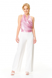 Брюки, топ T&N 7632 «галограмма»розовый+белый