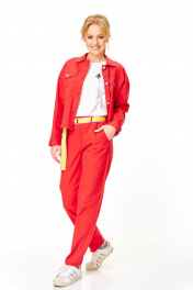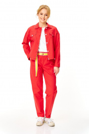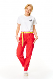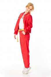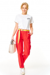 Брюки, жакет, ремень, футболка T&N 7642 белый+красный_коралл