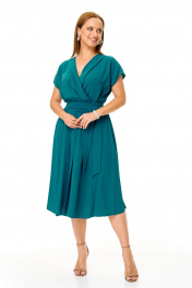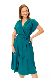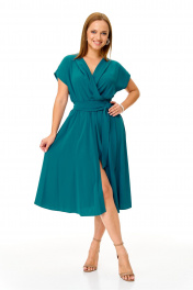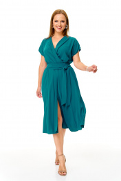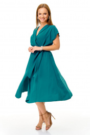Элегантное женственное платье из нарядной струящейся ткани. Платье отрезное по талии. Лиф свободный с глубоким запахом. Юбка из клиньев, по переду разрез. Плечо спущено. Пояс съемный. Платье без подкладки. Длина платья 110 Длина спинки до талии 39 см Длина юбки от талии 71 см. Длина плеча 21 см
