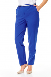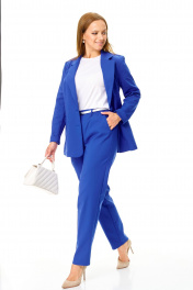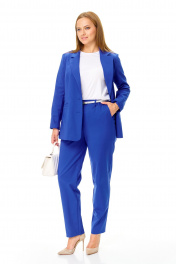 Комплект жакет, брюки, футболка, ремень Стильный легкий костюм в «ультрамарине» состоит из жакета, брюк и белой футболки с акцентом на контрастный ремень. Выполнен из полунатуральной ткани хлопок-нейлон. Свободный облегченный жакет с воротником и лацканами, застегивается на петли и пуговицы, с прорезными карманами по переду. Рукав длинный втачной двушовный.. Жакет без подкладки. Длина жакета: размер 48-52 - 68 см. Длина жакета размер 54-56 — 73 см Длина рукава: 61 см. Объем по груди размер 48 106 см размер 50 106 см размер 52 110 см размер 54 116 см размер 56 120 см Удобные брюки с высокой посадкой на талии, с глубокими карманами, по поясу резинка. Длина брюк 100 см. Окружность по талии : размер 48-74 см-104 см 50-78 см-108 см 52-84 см-112 см 54-88 см-116 см 56-94 см-120 см Полуоблегающая футболка из трикотажного полотна с круглой горловиной и коротким рукавом. Длина 60 см Длина рукава 16 см