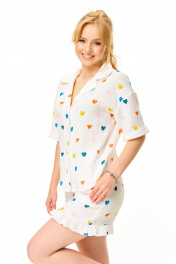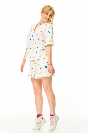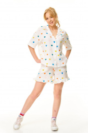 Блуза, шорты T&N 7673 молоко-сердечки