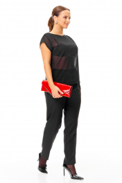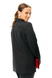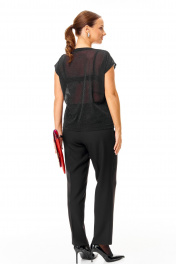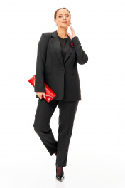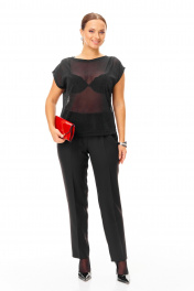 Комплект жакет, брюки, блузка Стильный нарядный костюм состоит из жакета, брюк и полупрозрачной блузки . Выполнен из нарядной костюмной ткани. Свободный жакет с воротником и лацканами, застегивается на петли и пуговицы, с прорезными карманами по переду. Рукав длинный. Жакет по переду и спинке на подкладке. Длина жакета: 71 см. Длина рукава 62 см Объем по низу жакета размер 48-114 см 50-118 см 52-126 см 54-132 см 56-136 см Удобные брюки с высокой посадкой на талии, с глубокими карманами, по поясу резинка. Длина брюк 100 см. Окружность по талии : размер 48-74 см-104 см 50-78 см-108 см 52-84 см-112 см 54-88 см-116 см 56-94 см-120 см Полупрозрачная блузка из трикотажного полотна с овальной горловиной и коротким рукавом. Длина 58 см Длина плеча 16-18 см