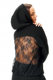 Ворвемся в Новый год! Сочетание нежности и дерзости в одной модели. Это не просто худи, а настоящий арт-объект для вашего гардероба. Мягкий и уютный крой спереди идеально контрастирует с соблазнительной спинкой, украшенной ажурным кружевом. Ткань-футер с начесом! Длина по спинке 57 см. Обхват по груди размер 42-50 118 см размер 52-56 126 см Длина рукава от капюшона 70 см.