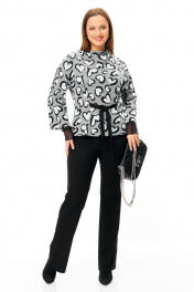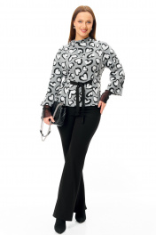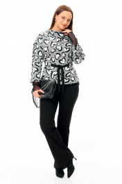 Стильный трикотажный комплект: слегка приталенный джемпер со съемными манжетами и брюки. Джемпер полуприлегающего силуэта из качественного турецкого трикотажного полотна с актуальным дизайном «сердечки». Горловина цельная «стойка». Плечо спущено. Рукав 3/4. По переду притален складками, а так же есть возможность затянуть талию лентами, завязав их по переду. Низ джемпера разноуровневый: спинка длиннее переда. Съемные манжеты из «сетки». Длина 57-60 см Длина рукава с плечом 62-65 см Объем по груди размер 46-96 см 48-100 см 50-105 см 52-109 см 54-113 см Объем по талии 46-84см 48-88 см 50-91 см 52-95 см 54-102 см Трикотаж мягкий, хорошо растяжимый, легкий. Брюки из трикотажного утепленного полотна в мелкий рубчик со стрейчем. Брюки хорошо тянуться по ширине. Полуприлегающего силуэта, слегка расширены от колена. Зрительно удлиняют ноги. Высокая посадка на талии, застежка молния сбоку, по поясу спинки резинка. Длина брюк 104 см. Окружность по талии размер 46- 66 см-76 см 48- 74 см-84 см 50- 78 см-88 см 52- 82 см-92 см 54-86 см-96 см Окружность по бедрам (ткань растяжима!) размер 46- 96-100 см 48- 100-104 см 50- 104-108 см 52- 108-112 см 54- 112-116 см
