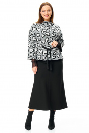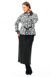 Стильный трикотажный комплект: слегка приталенный джемпер со съемными манжетами и юбка-midi. Джемпер полуприлегающего силуэта из качественного турецкого трикотажного полотна с актуальным дизайном «сердечки». Горловина цельная «стойка». Плечо спущено. Рукав 3/4. По переду притален складками, а так же есть возможность затянуть талию лентами, завязав их по переду. Низ джемпера разноуровневый: спинка длиннее переда. Съемные манжеты из «сетки». Длина 57-60 см Длина рукава с плечом 62-65 см Объем по груди размер 46-96 см 48-100 см 50-105 см 52-109 см 54-113 см 56-117 см Объем по талии 46-84см 48-88 см 50-91 см 52-95 см 54-102 см 56-106 см Трикотаж мягкий, хорошо растяжимый, легкий. Юбка из плотного трикотажного полотна длиной midi слегка расширенная к низу, пояс на «резинке», застежка молния. Юбка без подкладки. Длина 76 см. Окружность по талии размер 46 70-78 см размер 48 74-82 см размер 50 78-86 см размер 52 82-90 см размер 54 86-94 см размер 56 90-98 см