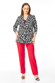 Брюки, жакет, ремень T&N 7742 черно-белый_дизайн-красный
