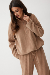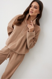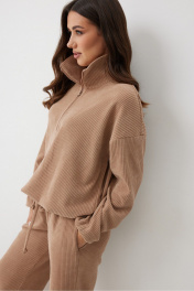 Женский джемпер в актуальном спортивном стиле. Модель выполнена из мягкого трикотажного полотна с широким рубчиком, что добавляет фактурности и мягкости. Свободный силуэт гарантирует максимальный комфорт и непринужденный вид. Высокий воротник-стойка (9 см) с функциональной застежкой на молнию, застегните для тепла и уюта или расстегните, создавая V-образный вырез. Линия плеча спущена, рукава длинные. Рукава и низ изделия оснащены резинками с фиксаторами, благодаря которым вы можете легко менять объем, создавая модный акцент или дополнительную защиту от прохлады. Этот джемпер без подкладки идеально подходит любых образов и станет вашей любимой вещью для прогулок, путешествий и расслабленных городских выходов. Джемпер составить стильный образ с брюками М377/1. Промеры в 44 размере: длина по спинке - 67 см длина рукава от горловины - 74 см высота стойки воротника - 9 см полу обхват рукава внизу - 15 см ПОГ - 60 см ПОБ (по низу изделия) - 62 см