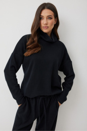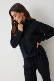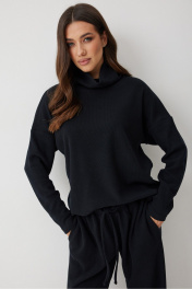 Женский джемпер в актуальном спортивном стиле. Модель выполнена из мягкого трикотажного полотна с рубчиком, что добавляет фактурности и мягкости. Свободный силуэт гарантирует максимальный комфорт и непринужденный вид. Горловина с высокой воротником - стойкой. Линия плеча спущена. Рукав длинный, чуть зауженный к низу. Этот джемпер без подкладки идеально подходит любых образов и станет вашей любимой вещью для прогулок, путешествий и расслабленных городских выходов. Джемпер составить стильный образ с брюками М378/2. Промеры в 44 размере: длина по спинке - 64 см длина рукава от горловины - 72 см полу обхват рукава внизу - 11 см ПОГ - 54 см ПОБ (по низу изделия) - 54 см