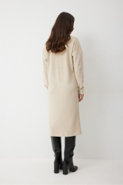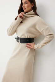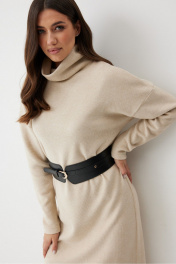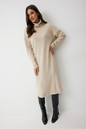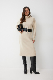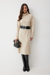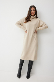 Трикотажное платье прямого силуэта, сочетающее в себе максимальный комфорт и актуальный минималистичный дизайн. Модель выполнена из мягкого трикотажного полотна с рубчиком, что добавляет фактурности и мягкости. Горловина с высокой воротником - стойкой (15 см), который выглядит стильно и дарит дополнительное тепло. Благодаря прямому силуэту, платье обеспечивает свободную и универсальную посадку. Спущенная линия плеча и длинный рукав, чуть зауженный к низу, создают расслабленный и уютный объем. Это платье станет незаменимой основой вашего осенне-зимнего гардероба, легко адаптируясь под любой стиль с помощью аксессуаров и обуви. Пояс в комплект не входит. Промеры в 44 размере: длина по спинке - 114 см длина рукава от горловины - 74 см ПОГ - 50 см ПОБ - 49 см