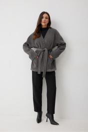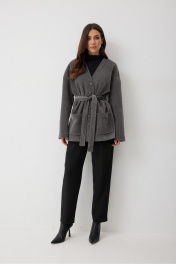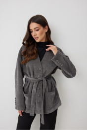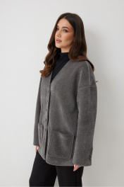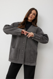 Элегантный комфортный жакет (кардиган), который легко стилизовать как в деловом, так и в повседневном стиле. Женский кардиган прямого силуэта выполнен из плотной трикотажной ткани в широкий рубчик, что придает ему фактурности и мягкости. Вырез горловины V-образный, без воротника. Застежка центральная на петли и пуговицы. По полочке на уровне бедер накладные карманы. Линия плеча спущена. Рукава длинные втачные двух шовные со шлицей на пуговицах снизу. Спинка прямая со средним швом. В комплекте идет пояс из основной ткани, который позволяет моментально изменить образ: носите кардиган свободно или подчеркните талию для более женственного силуэта. Благодаря поливискозной подкладке, кардиган прекрасно держит форму и обеспечивает максимальный комфорт. Промеры в 44 размере: длина по спинке - 74 см длина рукава от горловины - 77 см ПОГ - 58 см ПОТ - 60 ПОБ - 60 см