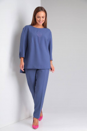 Комплект из блузы и брюк с вышивкой для демисезона TVIN 7612Л сирень