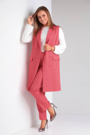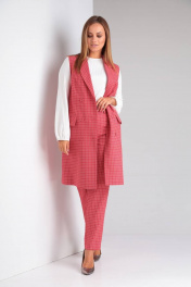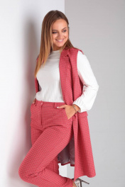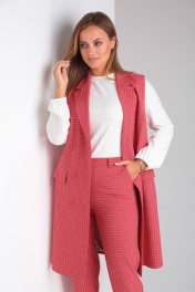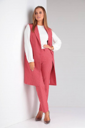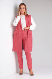 Деловой комплект блузы, брюк и жилета из текстиля и трикотажа TVIN 7646 красный