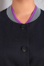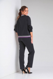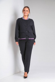 Комплект женский, состоящий из жакета-бомбера и брюк. Бомбер с центральной застежкой на петли-пуговицы, накладные карманы с клапаном, отлетные по низу. Спинка цельная. Спущенный втачной рукав на манжете с застежкой. Низ изделия и горловина обработаны трикотажным довязом. Брюки классические, заужены к низу, на поясе. По переду застежка гульфик, в боковых швах функциональные карманы. Длина по спинке 58 см. Ширина изделия на уровне глубины проймы в 46р 58 см, в 48р 60 см, в 50р 62 см. Длина рукава с плечом 71 см. Ширина изделия по линии низа 52 см. Длина брюк по боковому шву 100 см. Ширина по талии в 46р 41 см, в 48р 43 см, в 50р 45 см. Ширина на уровне линии бедер в в 46р 51 см, в 48р 53 см, в 50р 55 см.