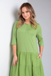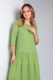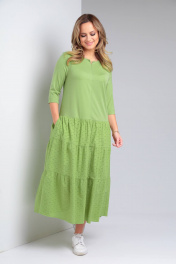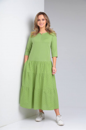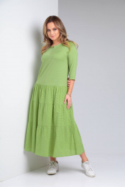 Демисезонное бохо-платье с воланами и укороченным рукавом TVIN 7685 салат