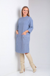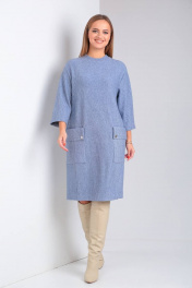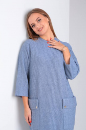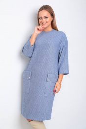 Платье свободного силуэта с накладными карманами из трикотажа TVIN 7769-1 деним