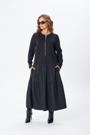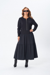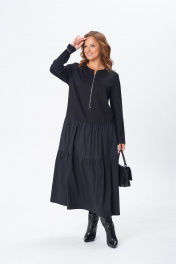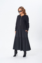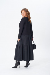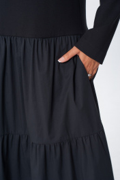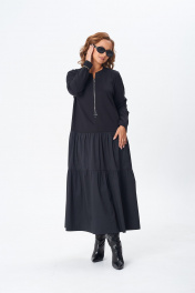Платье женское в стиле бохо выполнено из двух материалов: лиф-трикотажный, низ платья из однотонной хлопковой ткани. По переду лифа платья центральная застежка на молнию, нагрудные вытачки из бокового шва. По спинке средний шов. Горловина округлой формы обработана обтачкой. Рукав втачной длинный. Нижняя часть платья из двух присобранных воланов, в боковых швах функциональные карманы. Длина платья по спинке во всех размерах 131 см. Ширина изделия на уровне глубины проймы в 48р 52 см, в 50р 54 см, в 52р 56 см, в 54р 58 см, в 56р 60 см, в 58р 62 см, 60р 64 см, в 62р 66 см. Длина рукава 61 см. Ширина изделия по линии талии в в 48р 50 см, в 50р 52 см, в 52р 54 см, в 54р 56 см, в 56р 58 см, в 58р 60 см, в 60р 62 см, в 62р 64 см. Ширина изделия на уровне притачивания нижней части в 48р 53 см, в 50р 55 см, в 52р 57 см, в 54р 59 см, в 56р 61 см, в 58р 63 см, в 60р 65 см, в 62р 67 см. Ширина рукава вверху в 48р 18,5 см, в 50р 19,5 см, в 52р 20,5 см, в 54р 21,5 см, в 56р 22,5 см, в 58р 23,5 см, в 60р 24,5 см, в 62р 25,5 см.