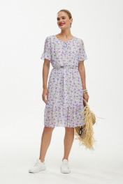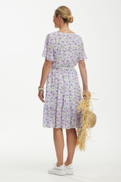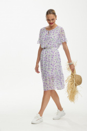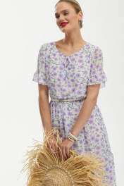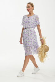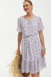 Платье женское, расширенное к низу от линии талии, по талии со сборкой на резинку. Рукав короткий, с воланом по низу. Платье резное по линии талии, по низу платья притачной волан со сборкой. Горловина круглой формы по переду с капелькой «v»-образной формы. Отделкой платья является ремень белого цвета из эко-кожи.Длина платья – 103 см Длина рукава – 27 см.