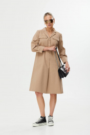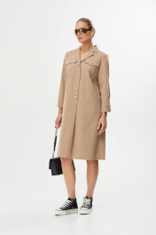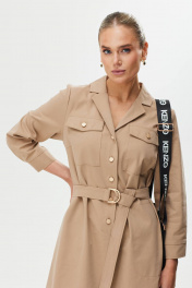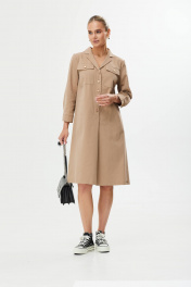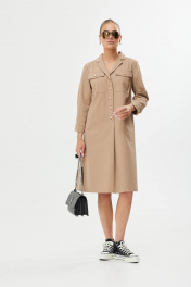 Платье А-силуэт с поясом и декоративной пряжкой Твой имидж 1561 бежевый