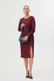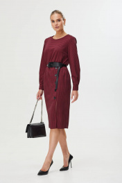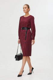 Платье п/пр силуэта выполнено из плательно-костюмной ткани.Длинный втачной рукав по низу обработан манжетой,которая застегивается на петлю и пуговицу.Перед платья с нагрудными вытачками.По юбке платья ассиметрично обработана шлица,которая закреплена декоративными пуговицами.Спинка со средним швом и талиевыми вытачками.В среднем шве обработана потайная молния.В комплект входит декоративный пояс.