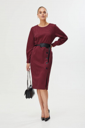 Платье деловое с асимметричной шлицей из текстиля Твой имидж 1626 красный_клетка