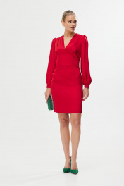 Миди платье из атласа с драпировкой и V-образным вырезом Твой имидж 1719 рубиновый