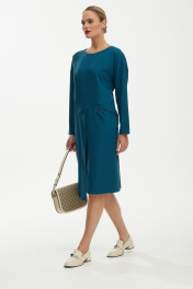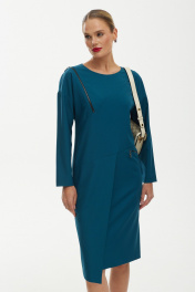 Элегантное платье длины миди в благородном оттенке морской волны станет любимым предметом одежды для любительниц классического стиля. Платье выполнено из приятной к телу трикотажной ткани. На передней полочке размещены декоративные элементы в виде молний. Платье можно сочетать л любыми видами обуви, дополнять стильными аксессуарами. Оно подойдет, как для повседневной носки, так и для офиса.