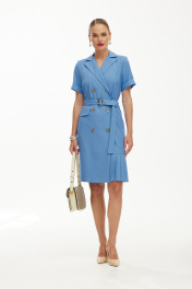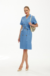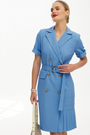 Голубое платье из текстиля с складками и декором Твой имидж 1847 голубой