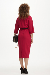 Элегантное платье – это предмет одежды, который можно носить в самых разных случаях. Независимо от того, выберете ли вы его, собираясь в офис или отправляясь на семейное торжество, ваш образ обязательно будет стильным. Платье женское полуприлегающего силуэта, на частичной подкладке, со спущенной линией плеча, с застёжкой в боковом шве на потайную тесьму молнию. По лифу переда - декоративная планка с пуговицами. В области груди - листочка с декоративной нашивкой из эко-кожи. Верхняя часть платья с цельнокроенной баской со складками и с петлями, в которые протягивается съёмный декоративный пояс из эко-кожи. Нижняя часть спинки с талиевыми вытачками и средним швом, в нижней части которого расположена шлица. Рукава одношовные втачные, с притачной и подвернутой манжетой по низу. Горловина платья овальной формы обработана обтачкой. В модели использованы фурнитура и ремень контрастного цвета, что позволяет эффектно расставить акценты на деталях и завершить стильный образ в целом.