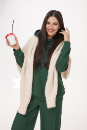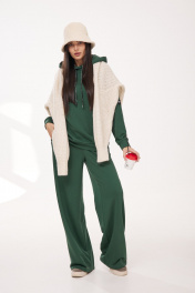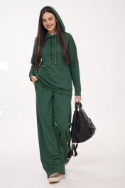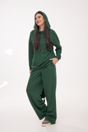 Двойка из трикотажа: брюки-палаццо и удлиненное худи Твой имидж 1986 бутылочная_зелень