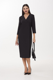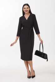Платье с запахом и нагрудными вытачками миди из костюмной ткани Твой имидж 1987 чёрный