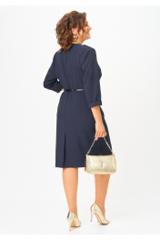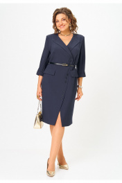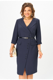 Элегантное платье с асимметричной застежкой, погонами и разрезом Твой имидж 2058 темно-синий