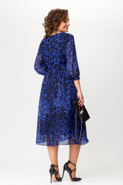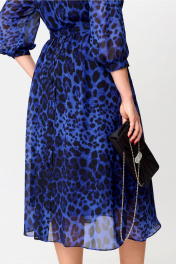 Струящееся шифоновое платье на вискозной подкладке – воздушный, легкий наряд на многие случаи жизни. Платье длиной миди из линии Italian chik от бренда Твой Имидж – это элегантное предложение, украшенное модным узором. На этот раз — это анималистический принт, хит прямиком с модных подиумов. Платье А-силуэта. Перед платья с нагрудными вытачками и отрезной фигурной кокеткой в верхней части. По центру кокетки переда обработана планка, которая застёгивается на петли и обтяжные пуговицы. Спинка отрезная по линии талии, верхняя часть спинки цельнокроенная. Нижняя часть спинки на сборке, по центру обработана вертикальная планка -"обманка", декорированная пуговицами. В боковых швах платья, в области бедер, обработаны карманы. Рукав втачной, длиной 7/8, низ рукава со сборкой, обработан притачной манжетой, которая застёгивается на петлю и пуговицу. Горловина округлой формы. В комплект к платью входит съёмный пояс из основной ткани с декоративной пряжкой. Помните, что леопардовому платью такого типа нравится компания минималистичных украшений, аксессуары можно и вовсе исключить. В холодные дни или вечера платье хорошо смотрится с однотонным пальто или жакетом. Длина платья по спинке — 115 см. Длина рукава — 48 см.
