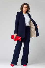 Костюм тройка из костюмной ткани и трикотажа для деловых образов Твой имидж 2078 тёмно-синий