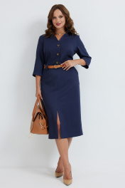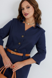 Платье полуприлегающего силуэта, выполненное из плательной поливискозы, длиной мидакси. Платье отрезное по линии талии, с центральной застёжкой на петли и пуговицы. Верхняя часть переда платья с фигурной V-образной горловиной, оформленной воротником рубашечного типа. Верхняя часть платья с нагрудными и талиевыми выточками. Нижняя часть переда платья с талиевыми вытачками и со средним швом, внизу которого обработан разрез. Спинка цельнокроеная с талиевыми вытачками. В боковом шве обработана потайная молния в области талии, в области бедер обработаны карманы. Рукав втачной, с цельнокроеной манжетой, длиной 3/4. В комплект к платью входит контрастный ремень с декоративной пряжкой. Стильное офисное платье от TVOI IMIDJ - идеальное сочетание комфорта и стиля! Универсальность и практичность изделия сделают его любимым в Вашем гардеробе в осеннем-зимнем сезоне.