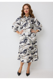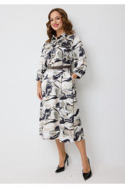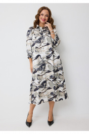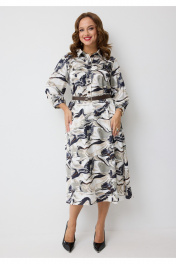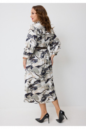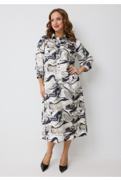 Платье А-силуэта, на подкладке, длиной мидакси, выполненное из плательной вискозы с принтом ""волны"". Платье на трикотажной подкладке. Горловина платья оформлена воротником рубашечного типа. Перед платья с центральной застёжкой на петли и пуговицы, расположенной до линии талии. По переду обработаны нагрудные вытачки. В верхней части переда косые встречные кокетки с декоративными воланами. В боковых швах обработаны карманы. Рукав втачной одношовный, длиной 3/4, низ рукава на притачной манжете, которая застёгивается на петлю и пуговицу. По верхней части спинки кокетка с воланом, нижняя часть - цельнокроеная. Нарядное платье с модным принтом подходит как юным леди, так и взрослым статусным дамам и отлично будет смотреться в любом сезоне.