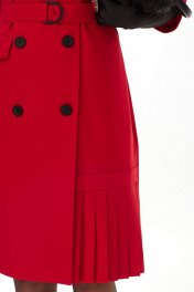 Платье женское полуприлегающего силуэта с двухбортной застёжкой на петли и пуговицы. По переду расположены нагрудные вытачки. На левой части переда - горизонтальный подрез с планкой. Нижняя часть оформлена заутюженными складками, направленными к боковому шву. По правой части переда, в области бедер, расположен горизонтальный прорезной карман с листочкой и клапаном. Спинка цельная с вертикальными талиевыми вытачками. Рукав двухшовный, длиной 3/4, с манжетой по низу рукава. Горловина платья оформлена воротником жакетного типа. В комплект к платью идёт пояс из основной ткани с декоративной пряжкой. Откройте для себя элегантность с нашим платьем в красном цвете. Это стильное платье с поясом отлично подойдет для офисных луков и вечерних мероприятий, подчеркивая вашу сдержанную привлекательность. Дополните образ лаконичными украшениями, и вы будете выглядеть безупречно в любой обстановке.
