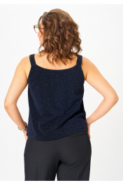 Топ прямого силуэта на широких бретелях, выполнен из трикотажного полотна с люрексом. Перед с нагрудными вытачками. Горловина переда лёгкой V-образной формы. Спинка цельнокроеная.
