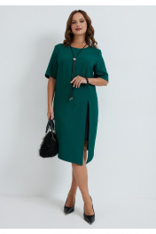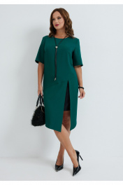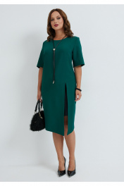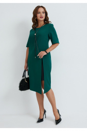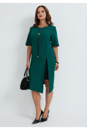 Эффектное платье прямого силуэта, выполненнное из поливискозы двух цветов. Перед платья с круглой горловиной и нагрудными вытачками. Перед платья в области бедра с косым подрезом. Нижняя часть переда состоит из верхней и нижней юбки. Верхняя юбка с косым низом и разрезом. Нижняя юбка из ткани контрастного цвета, имитирующая вторую юбку. Спинка с потайной молнией в среднем шве. Рукав втачной, длиной до линии локтя. В комплект к платью входит декоративная подвеска. Идеальное сочетание пикантности и элегантности от TVOI IMIDJ для тех, кто ценит стиль. В 48 размере ширина по груди - 52 см, по талии - 49 см, по бедрам - 53 см. В 54 размере ширина по груди - 57,5 см, по талии - 55 см, по бедрам - 59 см.