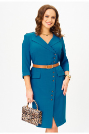 Элегантное платье полуприлегающего силуэта с асимметричной застежкой на петли и пуговицы. Перед платья с нагрудными вытачками и клапанами в области бёдер. Спинка с талиевыми вытачками и средним швом, внизу которого обработана шлица. Застежка асимметричная, двубортная, по низу платья расходится на разрез. В области плеч — погоны, закрепляющиеся на пуговицу. Рукава двухшовные втачные, длиной 3/4, с притачной манжетой. Платье с плечевыми накладками и со съёмным ремнем в цвет фурнитуры. Фурнитура и комплектующие (ремень) могут незначительно отличаться от представленных на фото. Платье отличается классической элегантностью в современной версии. Это именно то, что вы ищете, если вам важен имидж, стиль и классика. Данная модель — отличная идея стилизации для офисной работы, но не только… В зависимости от аксессуаров стильное платье подойдет и для многих других случаев.