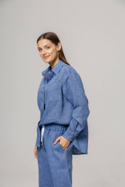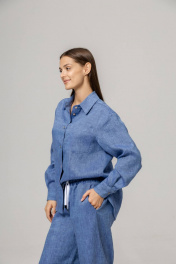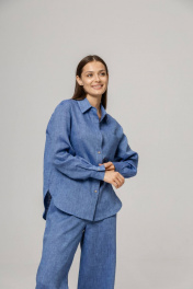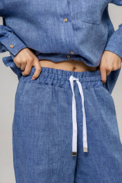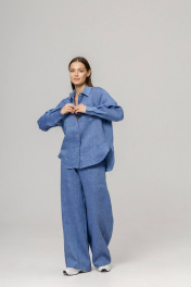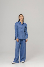 Костюм из 100% умягченного льна( рубашка + брюки палаццо)Рубашка прямого свободного кроя с закругленным низом, с широкими манжетами, классическим воротником-стойкой, застежкой на пуговицы из натурального кокоса. Размер S: Длина изделия по спинке 74 см ( передняя планка 66 см),Полуобхват в области груди 55 см,Длина рукава от воротника 73 см, Длина плеча 17 см. Размер М :Длина изделия по спинке 75см ( передняя планка 68 см), Полуобхват в области груди 58 см, Длина рукава от воротника 74 см, Длина плеча 18 см. Размер L : Длина изделия по спинке 79 см ( передняя планка 71 см), Полуобхват в области груди 63 см, Длина рукава от воротника 75 см, Длина плеча 18 см. Брюки палаццо с боковыми карманами , пояс на резинке с дополнительным шнурком с металлическими наконечниками. Длина внутреннего бокового шва 78 см.