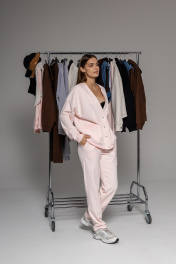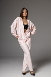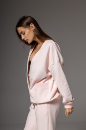 Костюм (кардиган +_брюки )из премиального хлопкового футера с велюровым напылением.Классический кардиган прямого силуэта с карманами, симметричный, среднего обьема. Застежка на пуговицах. Вырез горловины V-образной формы.Линия плеча спущена.Рукава втачные, длинны, внизу на манжете, что позволяет при желании, подтягивать рукав и фиксировать возле локтя.. Карманы встроены в боковой шов, с декоративным оформлением из кашкорсе верхней части кармана. Длина кардигана у размеров S и М 65 см, у размера L и XL- 72см. Брюки из хлопкового футера с велюровым напылением, зауженные книзу, с высокой талией.и Притачной пояс со шлевками, сзади на резинке, передние половины со складками, застежка на молнию и пуговицы, боковые карманы. Длина внутреннего шва брюк 78 см