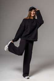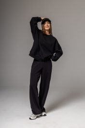 Костюм ( Свитшот + брюки палаццо с фиксатором) выполнен из премиального турецкого футера .Он отлично держит форму и обладает исключительными теплорегуляторными функциямиСвитшот Oversize со спущенным плечом, на рукавах внизу манжеты из кашкорсе, низ свитшота также оформлен манжетом из кашкорсе, что позволяет свитшоту иметь законченный вид и держать форму. Длина свитшота от плеча для размера S и М -66 см, для размера L - 70 cм. Длина рукава от горловины 72 см. Брюки палаццо с фиксатором позволяют носить брюки как прямыми, так и затянутыми на резинку-фиксато,особенно хорошо это в дождливую погоду, так как зафиксирорвав брюки, вы не дадите им загрязниться и вымочиться.Хлопковый шнур в поясе позволяет формировать оъем талии по мере необходимости. Абсолютно универсальное изделие для любого гардероба и стиля. Не образуются катышки на лицевой стороне изделия, цвет зделия остается ярким и насыщенным даже после 50 стирок. Уход за изделием: деликатная стирка с жидким моющим средством при температуре 30-40 градусов. При стирке использовать мягкие моющие средства. не применять отбеливающие средства.