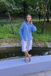 Рубашка из умягченного льна прямого, свободного кроя с закругленным низом. С широкими манжетами, классическим воротником-стойкой. Застежкой на пуговицы. Пуговицы натуральные кокосовые. По спинке складки навстречу друг другу, это позволет рубашке не натягиваться на бедрах. а спокойно ниспадать вниз. Все внутренние швы закрытые, поэтому, даже после многочисленных стирок швы рубашки остаются безупречными, никаких торчащих ниток. Умягченный лен отличается от обычного льна тем, что мнется не заломами, а естественной мятостью, которую можно даже не гдадить, при желании. Широкий манжет может быть застегнут, либо подвернут и, благодаря, закрытым швам смотрится аккуратно. . Абсолютно универсальный комплект для любого гардероба и стиля. Уход за изделием: деликатная стирка с жидким моющим средством при температуре 30-40 градусов. S : ширина 55 см, длина передней планки 66 см, длина спинки от плеча 72 см, длина рукава от горловины 72 см. М: ширина 60 см, длина передней планки 67 см, длина спинки от плеча 73 см, длина рукава от горловины 74 см. L: ширина 65 см, длина передней планки 70 см, длина спинки от плеча 75 см, длина рукава от горловины76 см.