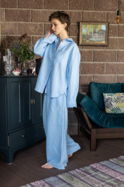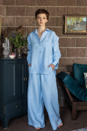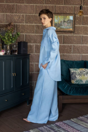 Брюки палаццо и рубашка из льна свободного кроя Twok 200811 голубой