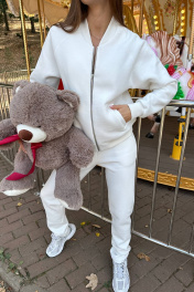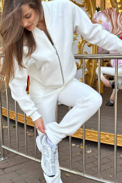 Белый костюм: бомбер и брюки из премиального футера Twok 300551 белый