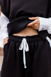 Демисезонный комплект из льняной рубашки, жилетки и широких брюк Twok 308225 черный-белый