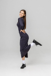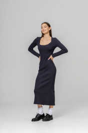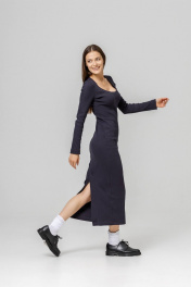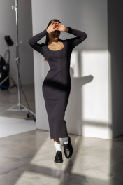 Облегающее трикотажное платье в цвете Графит с глубоким круглым вырезом, который не оставит равнодушным. . Ткань сохраняет первоначальный вид, не покрываясь катышками, даже после многочисленных стирок. Кашкорсе не просвечивает, не мнется, не садится, не линяет.Благодаря своему крою, оно изящно сидит по фигуре, при этом не стесняет движений, позволяя чувствовать себя комфортно весь день. Длина изделия 135 см, сзади высокий разрез, позволяющий свободно двигаться,длина рукава от горловины 75 см.